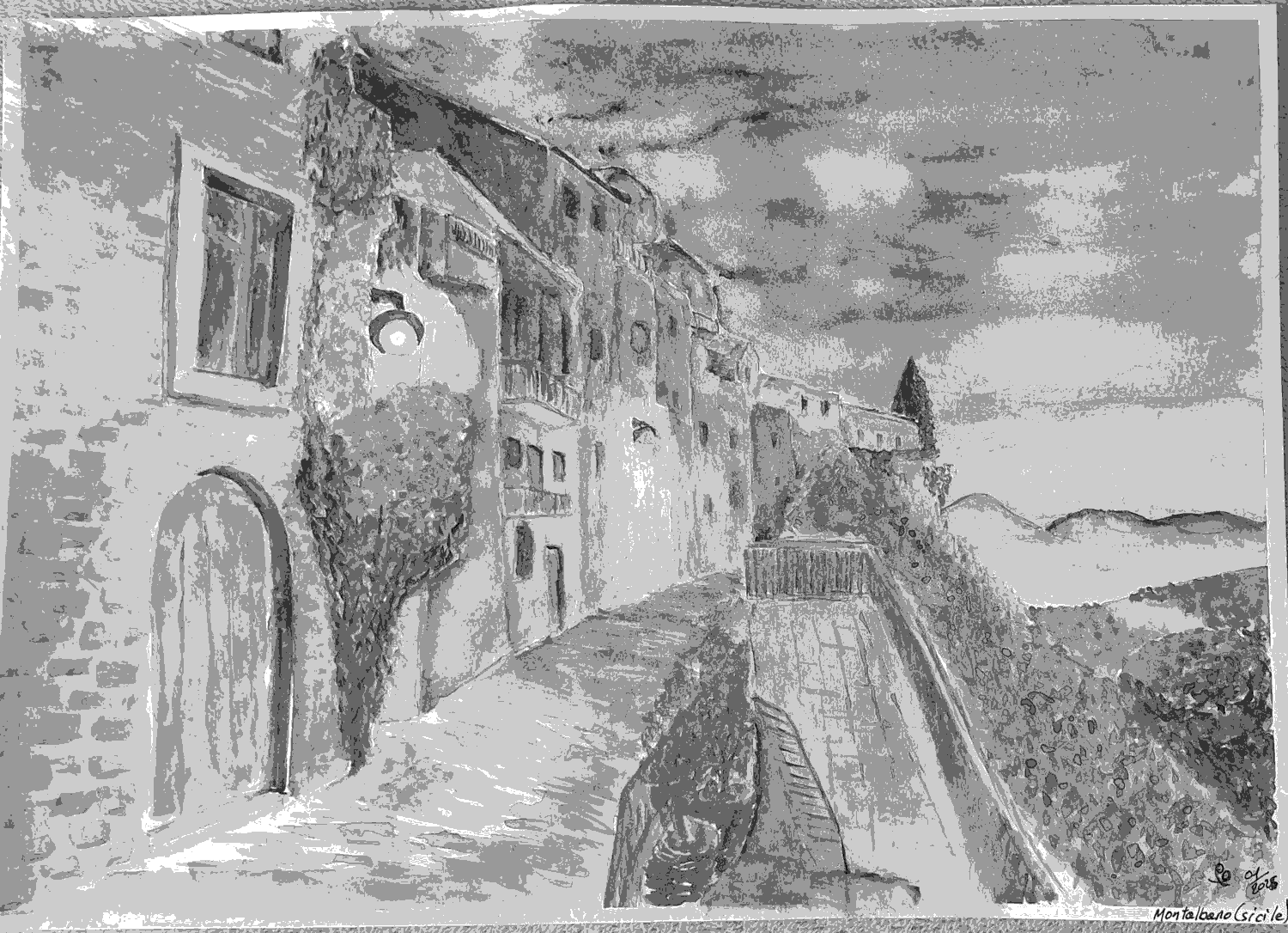 J'ai toujours l'idée de contribuer au post de Simouhé sur l'inspiration mais le sujet est compliqué pour moi. Ça viendra mais là j'ai un cas concret. En triant mes photos récentes d'un voyage en Sicile je suis tombé sur celle du village de Montalbano en début de nuit. Superbe village médiéval. Là j'ai eu une vraie inspiration pour représenter une ambiance nocturne mais pas trop.