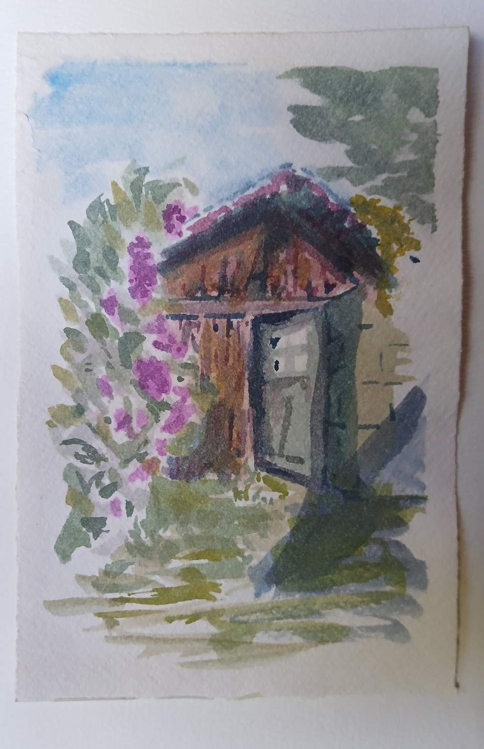 Voici ma contribution ( sans détachement imaginatif) à ce défi qui suscite beaucoup d'intérets pour ma part la difficulté à été de faire figurer l'ouverture de la porte dans la pénombre de cette demeure ,ayant fait un premier essai avec l'ombre en bas à droite qui n'était pas convainquant , je l'ai supprimé dans la version définitive ( j'ai bien vu la version de Jacky réussie sur ce point et super dans l'ensemble)