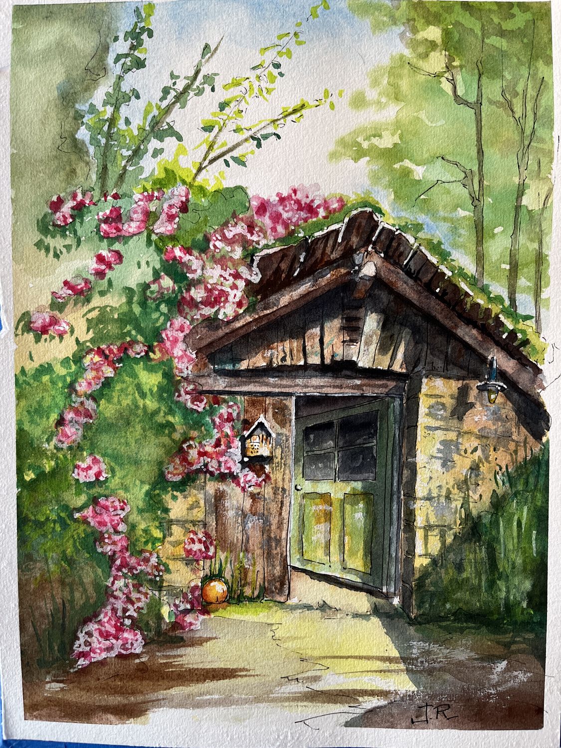 Je ne suis toutefois pas mécontent de quelques textures et ombres qui me semblent correctes. Par contre, j’ai fait un peu n’importe quoi de part et d’autre avec un talus herbeux à droite qui théoriquement est une simple ombre sur le mur. Pourquoi faire simple quand on peut se compliquer la vie…et qu’au final c’est moins bien?