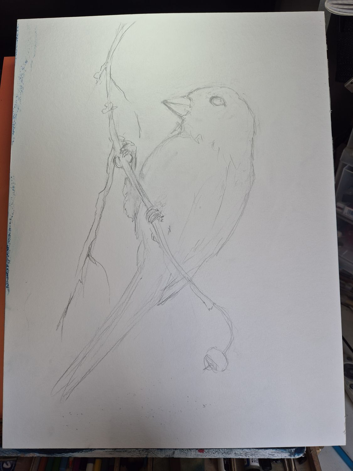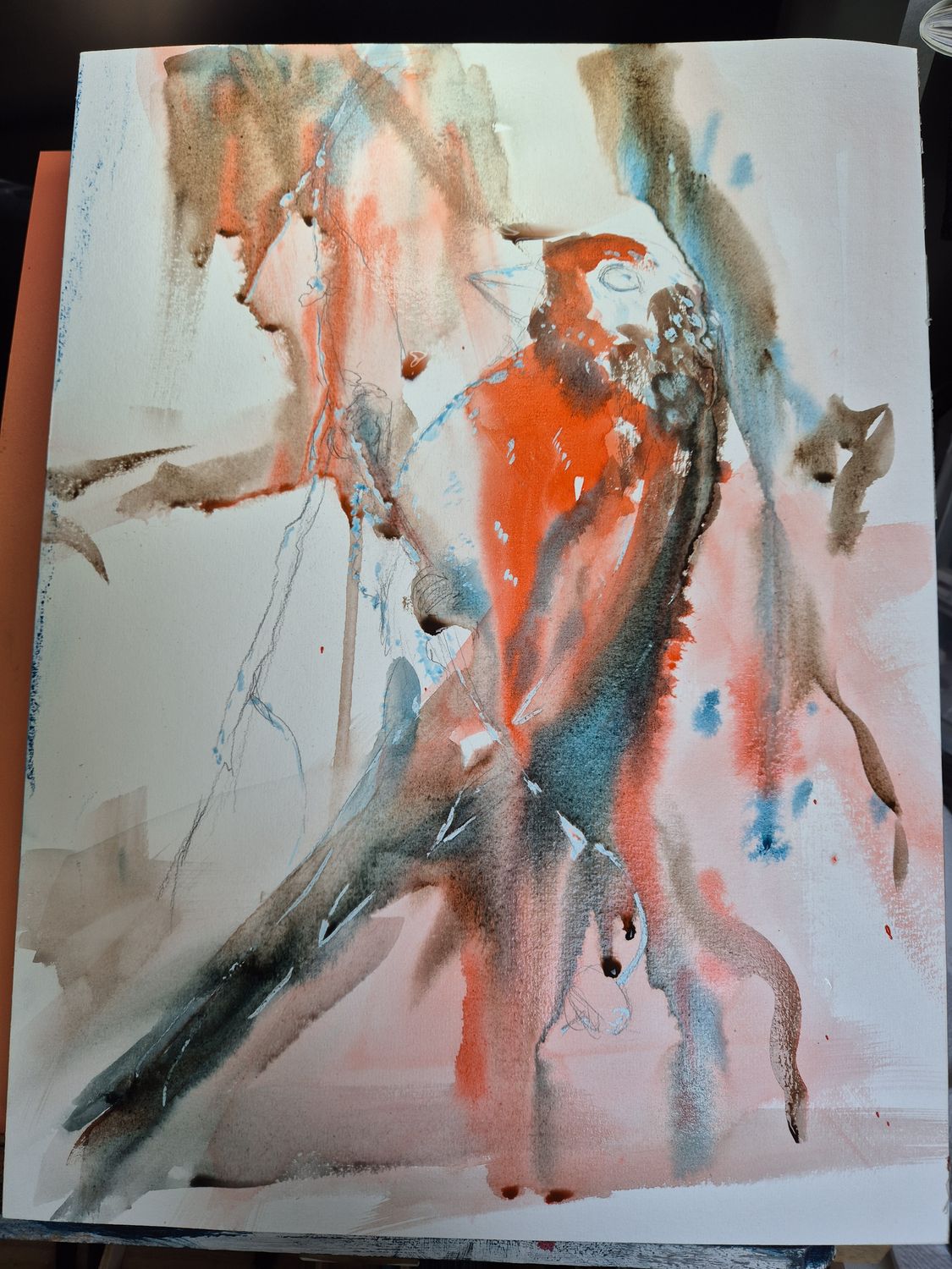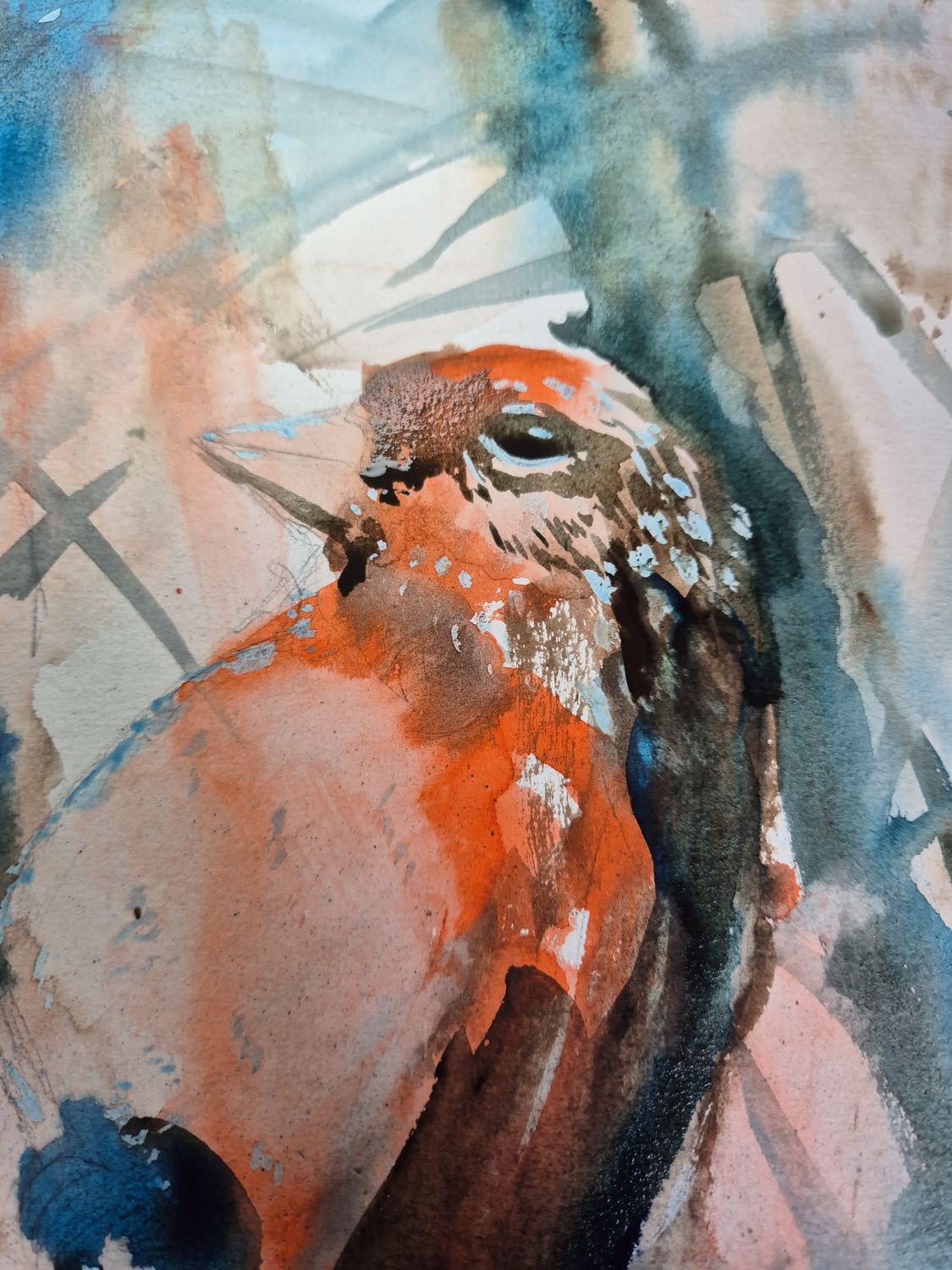 Alors, j'ai fait cet oiseau qui m'a inspiré. Je dois préciser que je fais de l'aquarelle depuis janvier, c'est ma résolution 2026. En revanche, je peins depuis plus de 6 ans et suis accompagnée de professeurs de ma région. J'ai donc la théorie et ma pratique d'autres médiums, mais pas la pratique de l'aquarelle.