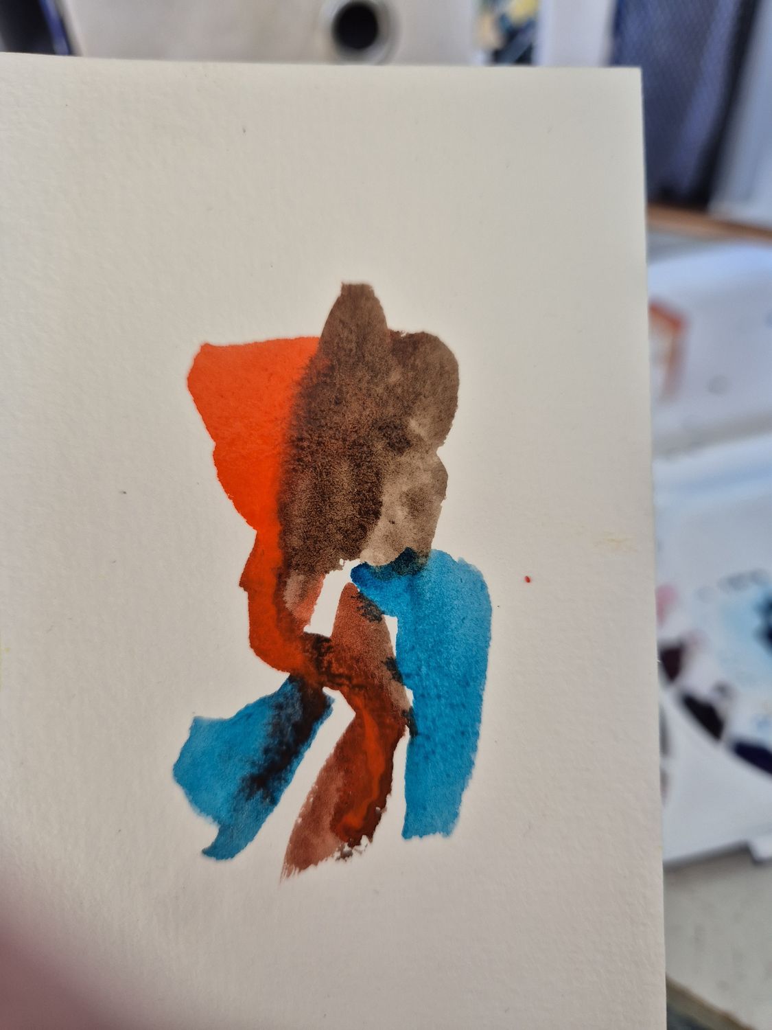 Pour les couleurs, j'ai pris du vermillon, du brun Van Dyke et du bleu canard.