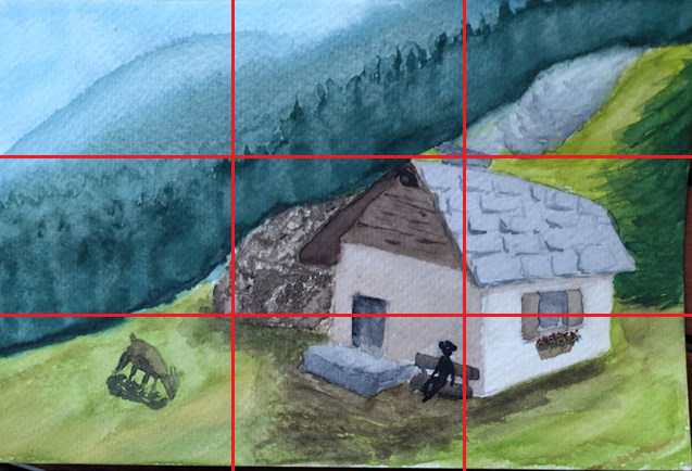 Je pose les trois tiers pour repérer les Points Forts du dessin.