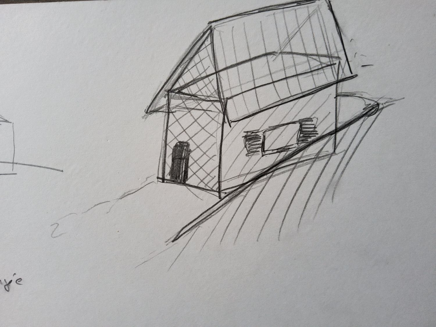 Et si tu nous rejoignais en faisant un essai d'ombre portée sur le devant de cette maison, et le caprin ? Si chacun travaille sur une partie de l'oeuvre ça pourrait le faire 😎😎😎 comme on dit chez les d'jeunes.