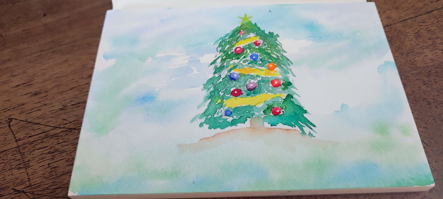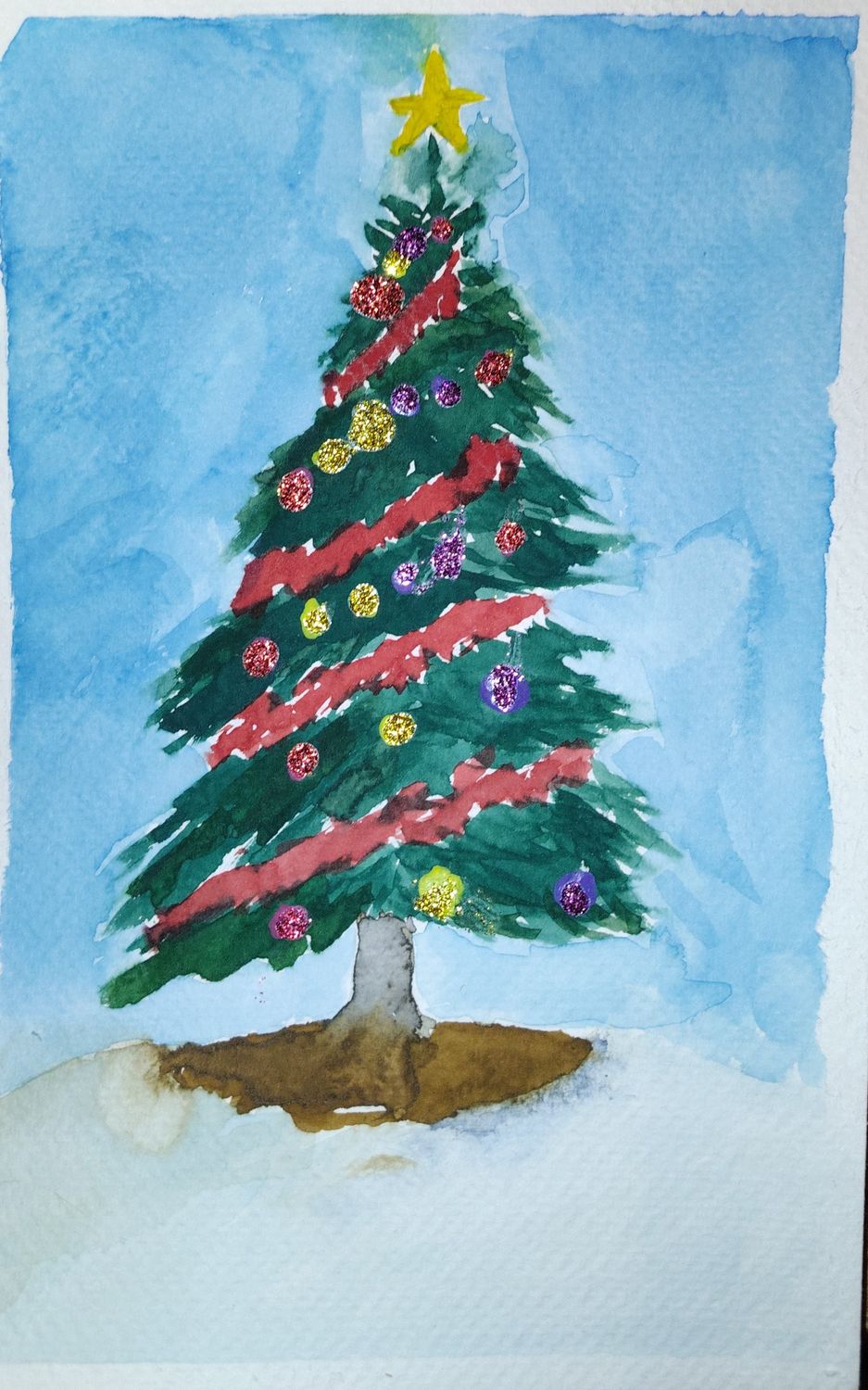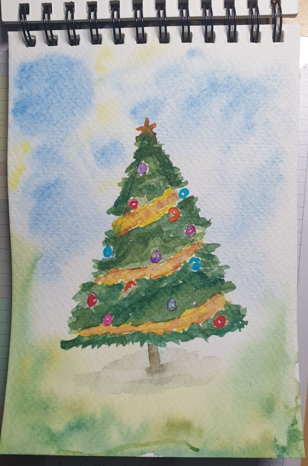 Voici mon sapin d' après le tuto avec un peu d'aquarelle doré de chez isaro