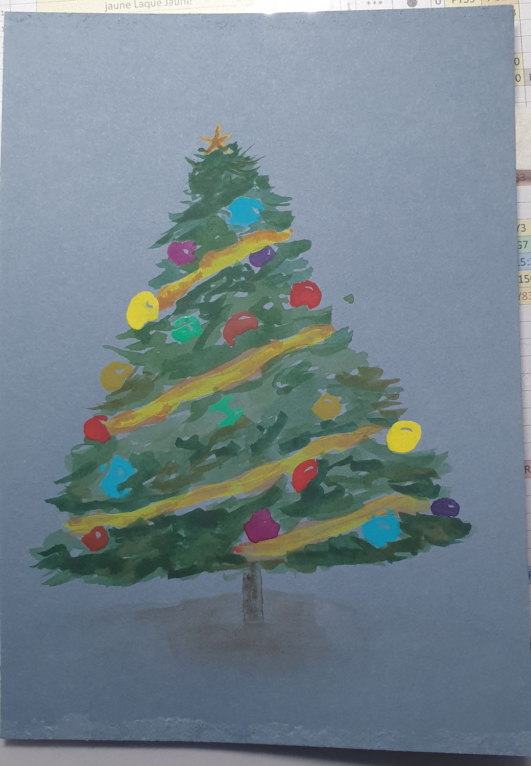 Tu as tors, il est très bien ton sapin. Une photo à la verticale du papier en cadrant un peu plus serré.