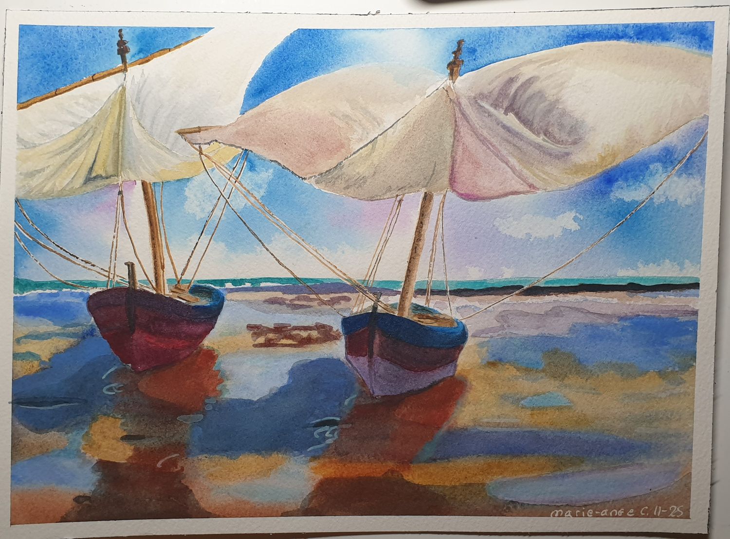 Je tenterai sûrement une copie du tableau des 2 bateaux face au peintre ... Thibault m'a montré qu'on pouvait oser reproduire les grands à notre façon, merci Thibault !