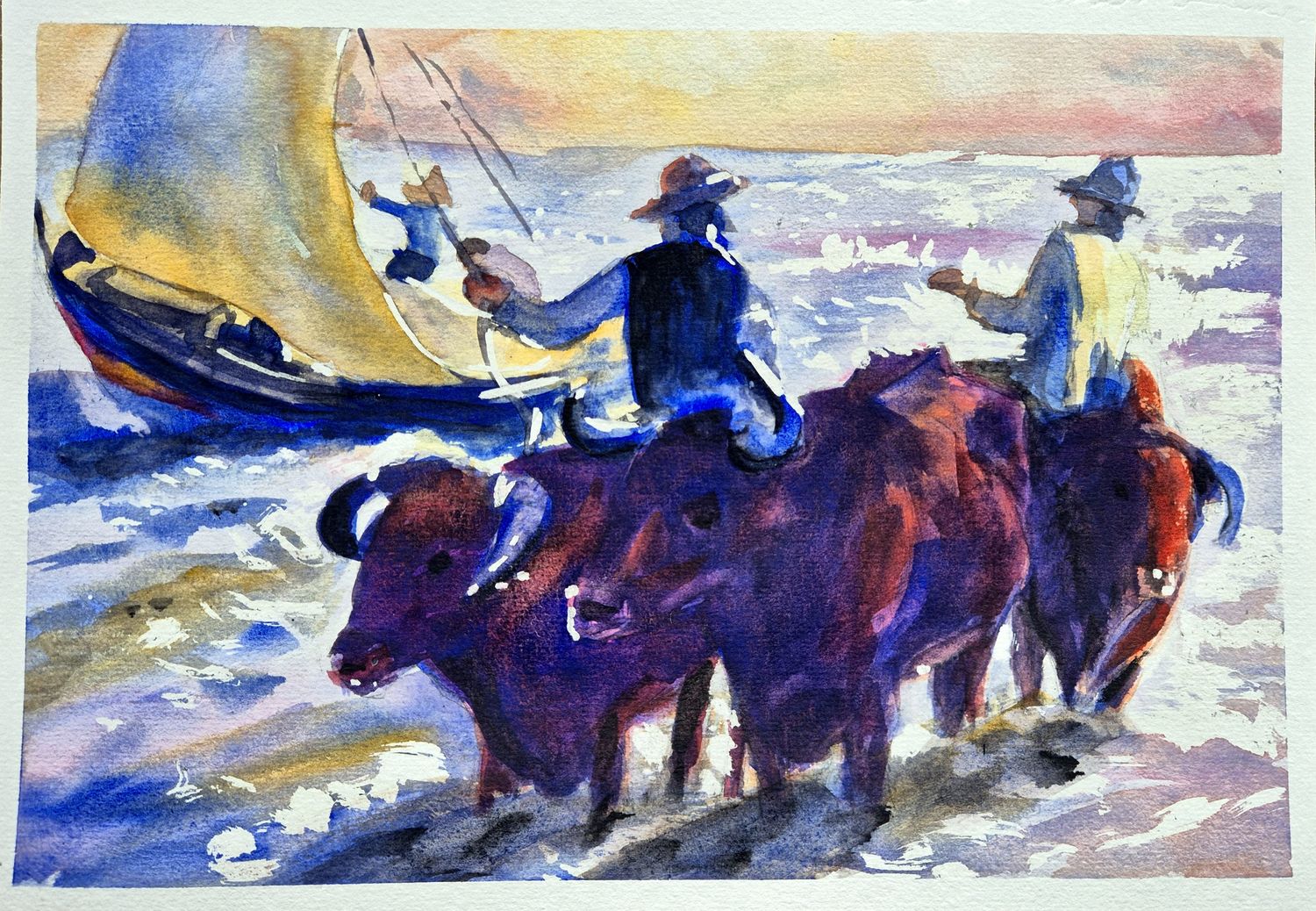 Merci Marie Ange, je ne connaissais pas cet artiste. Que ce soit ses scènes de travail sur les plages, le mouvement, les portraits.....tout est beau, l’atmosphère est saisissante. Ton aquarelle est super bien réussie. Je crois que je ferai une aquarelle d’une de ses œuvres. Quand Thibault avait proposé le tuto sur les meules de Monet je l’avais fait.