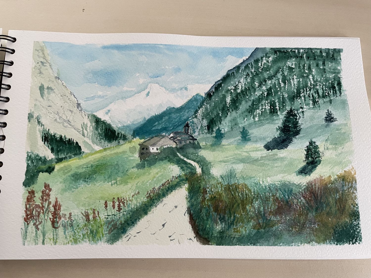 Hello, très chouette cette balade en montagne. Pour aider a garder la sensation de profondeur tu aurais peut-être pu aller sur des forêts à gauches moins chargée en pigment. Car là l’intensité est la même que pour les sapins plus en avant de la partie droite. De même tu peux ajouter des détails plus marqués sur l’avant. Tes fleurs de premier plan sont un peu « plates » à mon goût. Tu peux peut-être leur ajouter du contraste (avec du foncé ou du blanc), surtout sur les tiges qui sont très en transparence. Mais j’aime beaucoup le rendu global surtout la partie montage de droite il y a un côté semi-abstrait que j´adore!