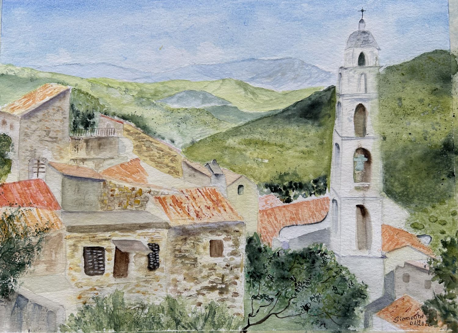 Je viens juste de revoir tes aquarelles et toutes dégagent quelque chose de particulier avec justement le pastel de tes couleurs. L’église est plus pimentée ce qui rend un effet incroyable à la neige. Le village cerné par les differents verts est super avec le tour des maisons rehaussé d’un trait. Le clocher de Palasca a son charme. Donc bravo.
