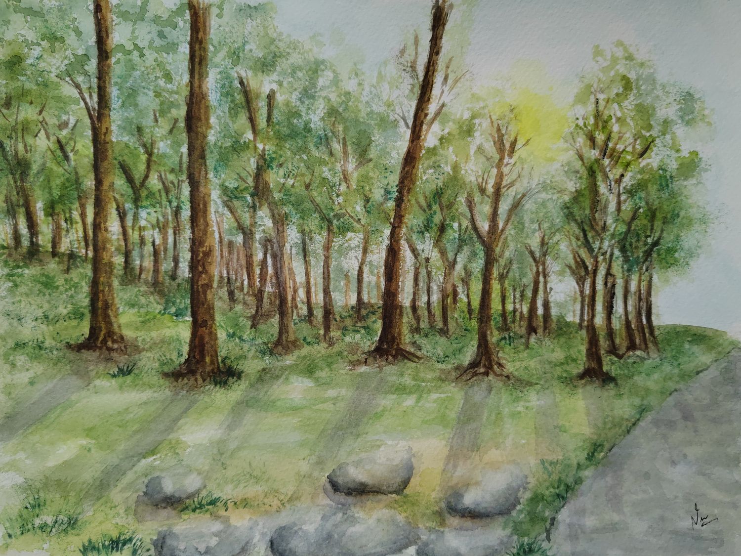 Aller, on tourne la page de cette réalisation. Je vous propose l'avant dernière que j'avais faite, ce paysage forestier.
