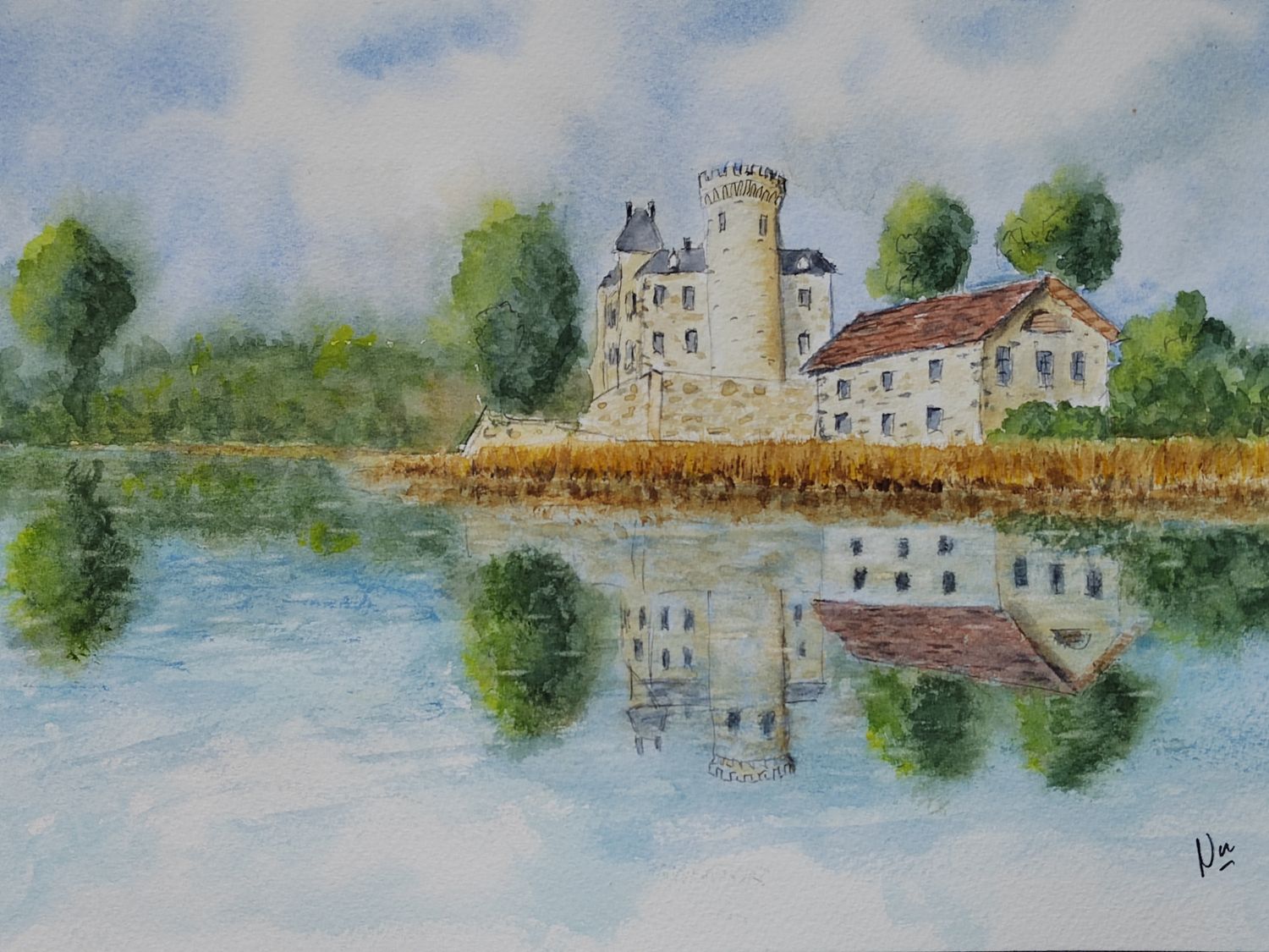 Pour ce premier message voici une représentation du château de Duingt sur les berges du lac d'Annecy (d'après photo).
