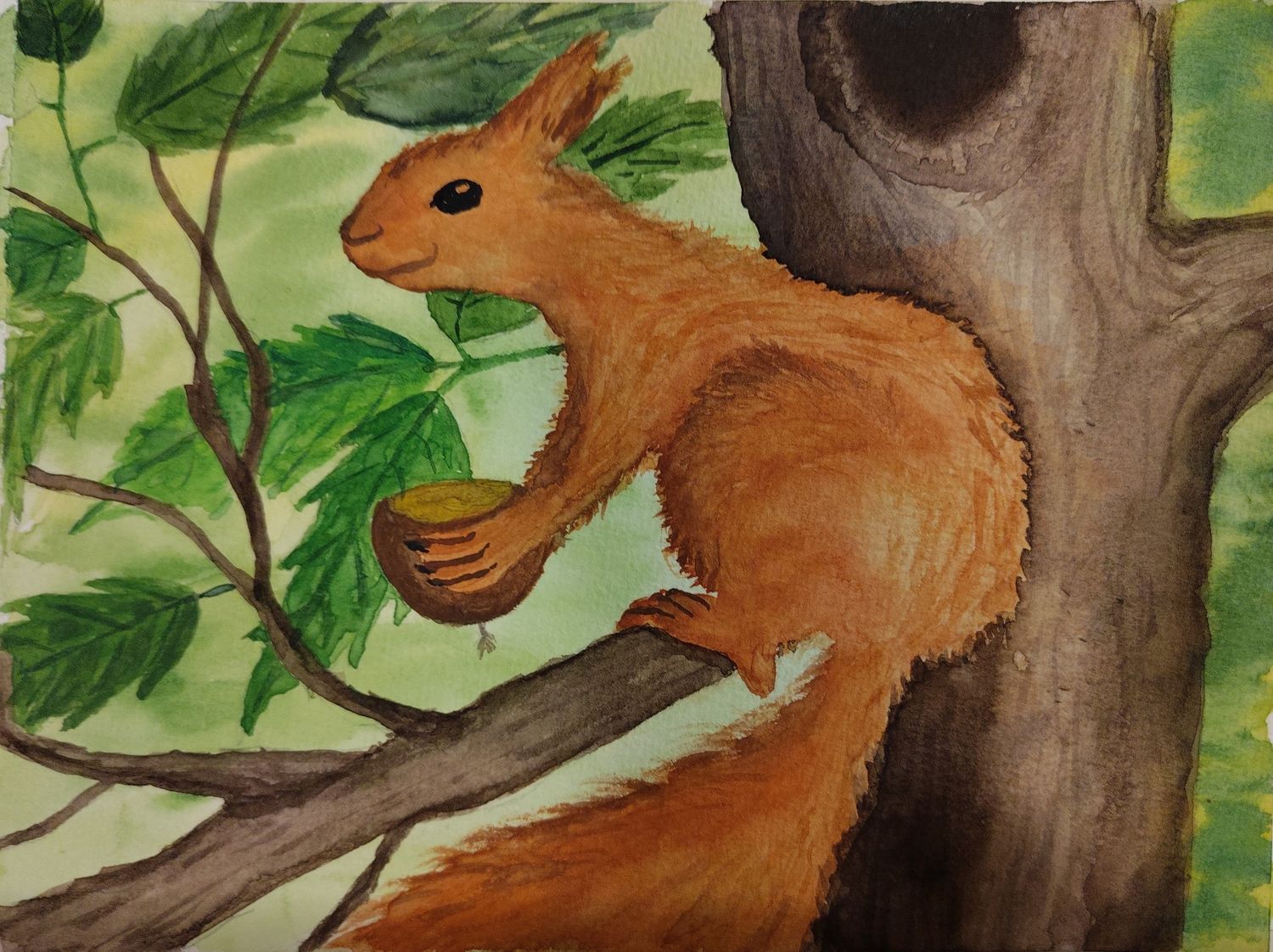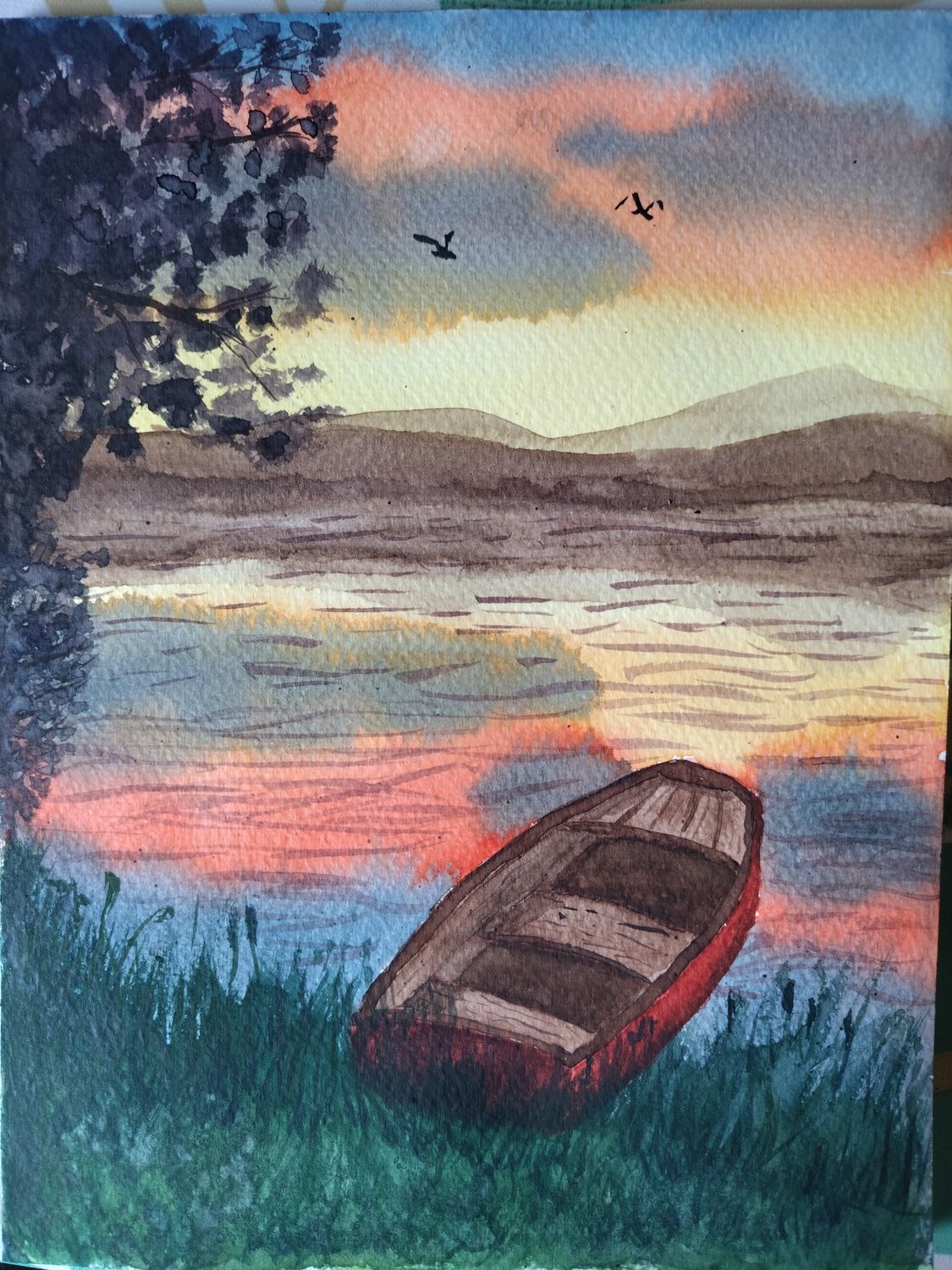 Pour le Martin pêcheur j‘aime le fond mais tu pourrais passer une deuxieme couche, toujours en fondu non homogène et aller vers du plus sombre pour faire ressortir ton sujet. Tu peux en profiter pour remouiller la queue et faire des retraits ( un pinceau humide que tu frottes sur le papier doucement pour flouter et ou retrouver du blanc du papier, et on essuie les pigments qui sont attrapés par le pinceau sur un absorbant).