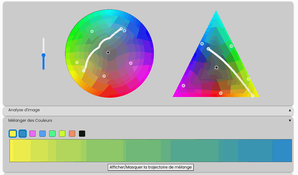 • de visualiser les couleurs sur le disque et le triangle chromatiques