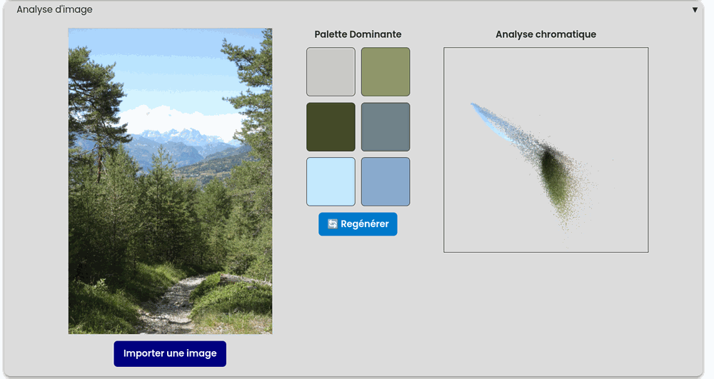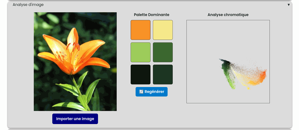 • d'analyser des images, en extraire une palette de couleurs et les visualiser sur le disque chromatique