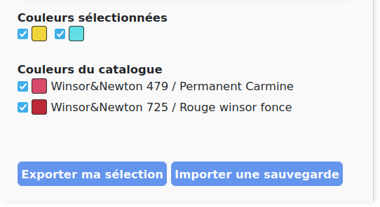 • Il est désormais possible d'exporter la liste de couleurs sélectionnées. Cela crée un fichier de sauvegarde, que vous pourrez réimporter plus tard. Vous pourrez ainsi conserver vos couleurs favorites.