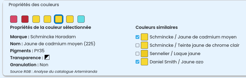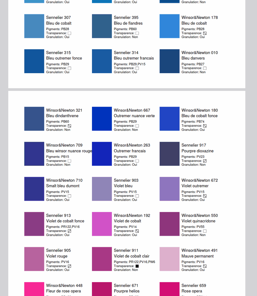 Pour le moment, le catalogue des couleurs reste très incomplet et certaines mesures sont imprécises, mais ça donne quand même une bonne base de comparaison je pense.