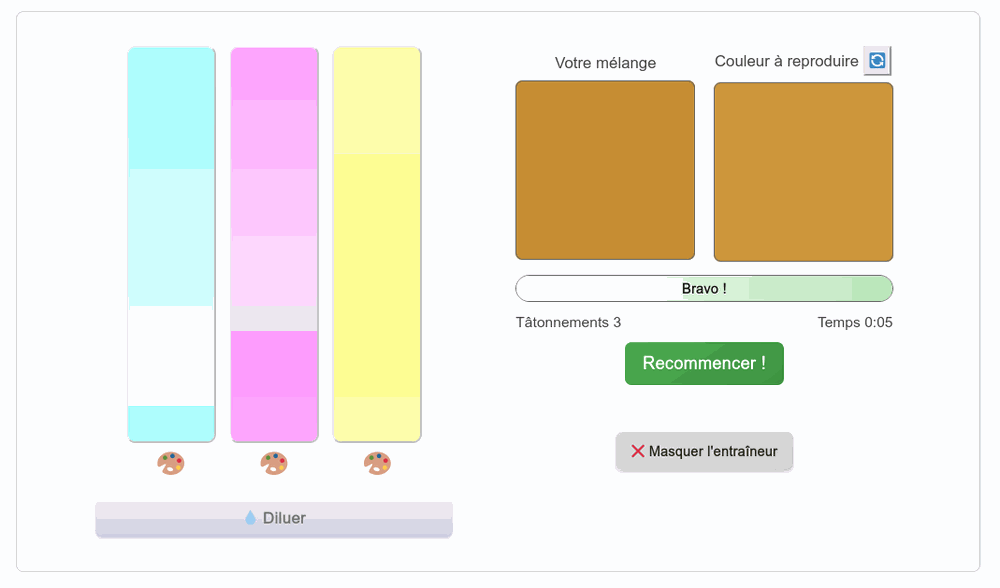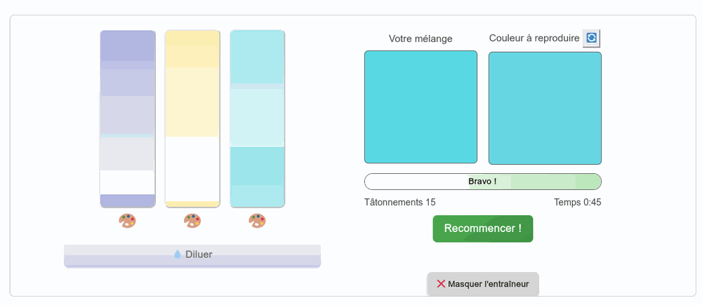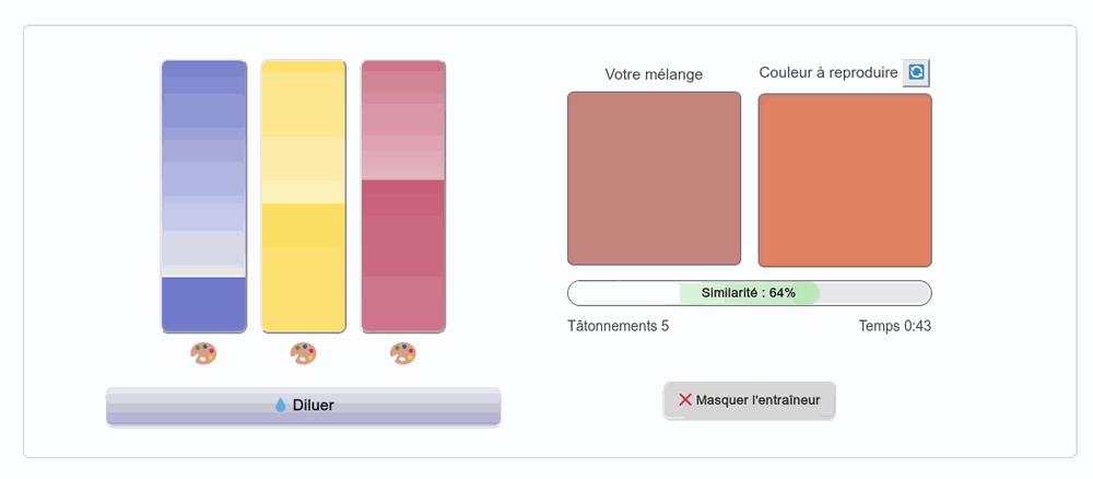 Cela permettrait aux débutants de "sentir" comment on pratique pour s'approcher de cette couleur que l'on "voit" mais que l'on ne sait pas composer ! Après cet apprentissage guidé, les réflexes émergeront. Ce serait un outil pédagogique.