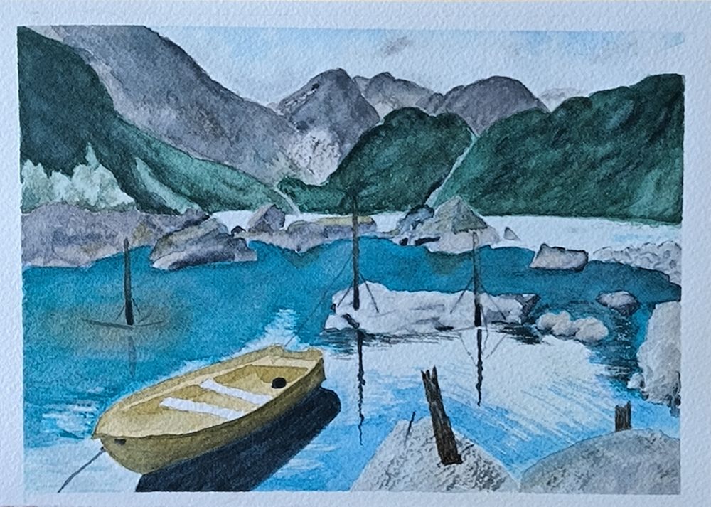 Je m'appelle Béatrice, j'ai 67 ans et je suis retraitée. J'ai commencé l'aquarelle il y a 3 mois ( ma fille m'a offert un "kit" de peinture et papier aquarelle pour la fête des mères)