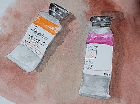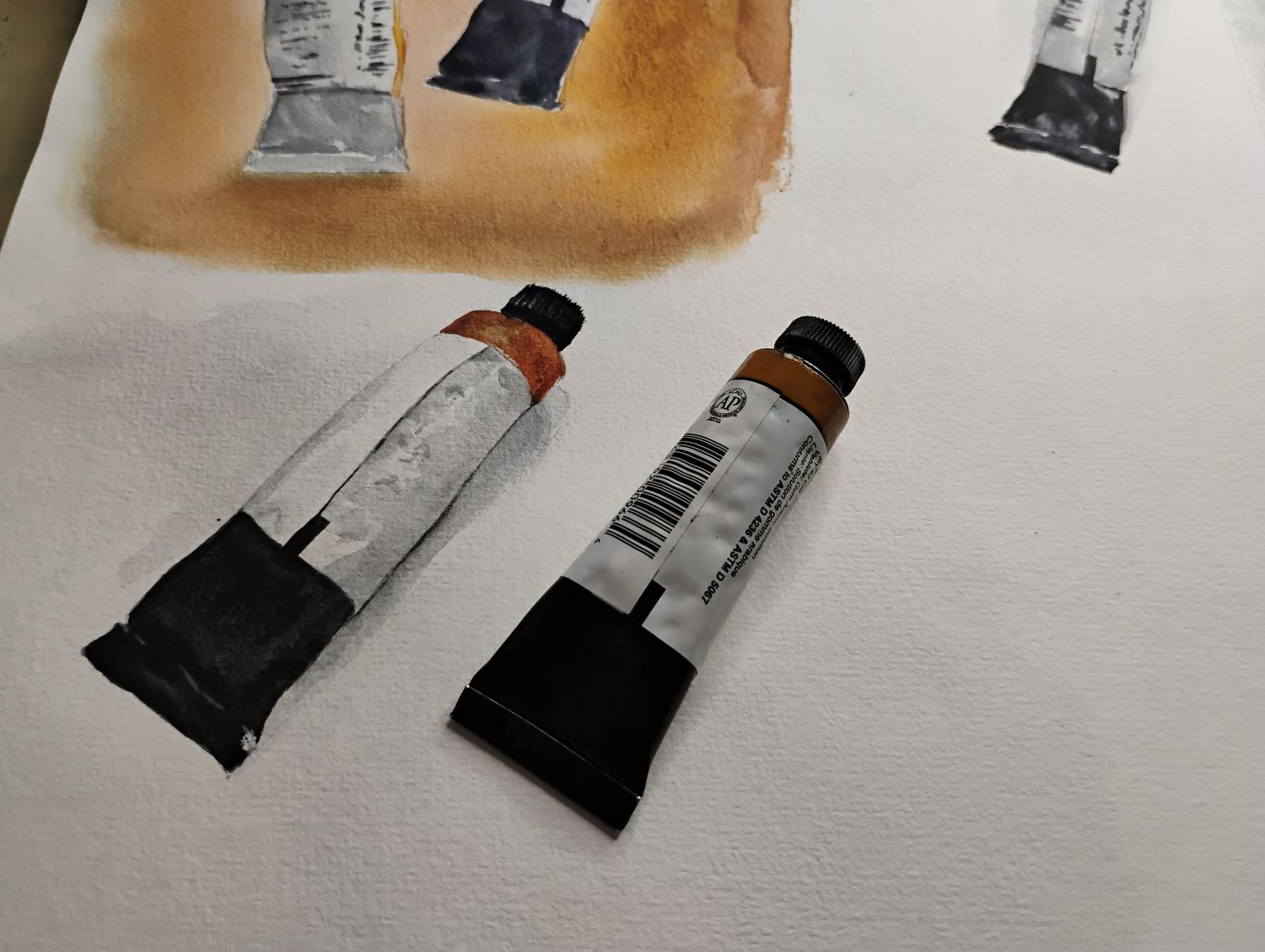 Je vous propose d'approfondir le sujet en essayant de peindre un tube le plus réaliste possible. Ce n'est pas du tout évident. Moi-même je ne suis pas sûr de ce qui crée l'illusion du volume. Ça doit tenir à des micro détails : l'incurvation des courbes qui soulignent l'aspect bombé, les nuances subtiles...