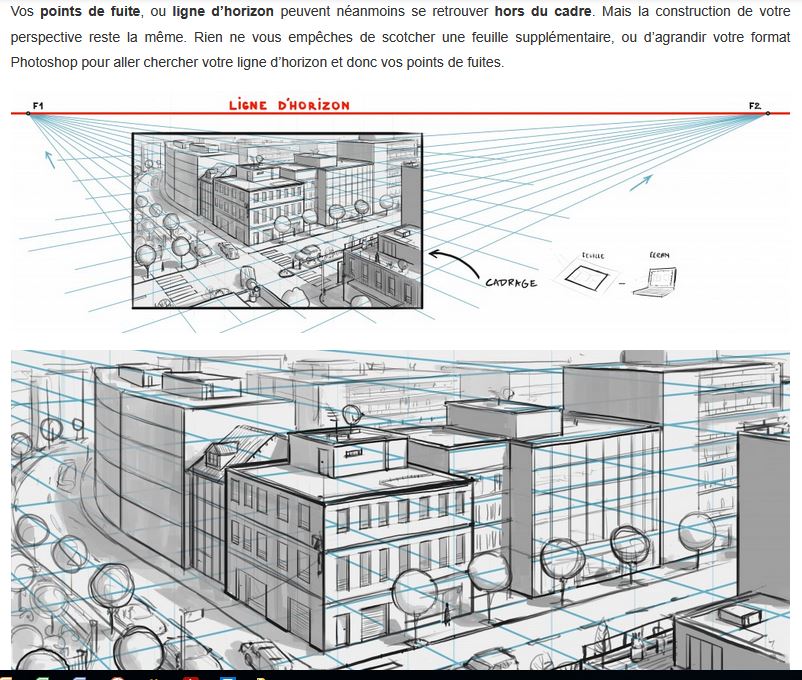 Remarque: Vos points de fuite, ou ligne d’horizon peuvent néanmoins se retrouver hors du cadre.