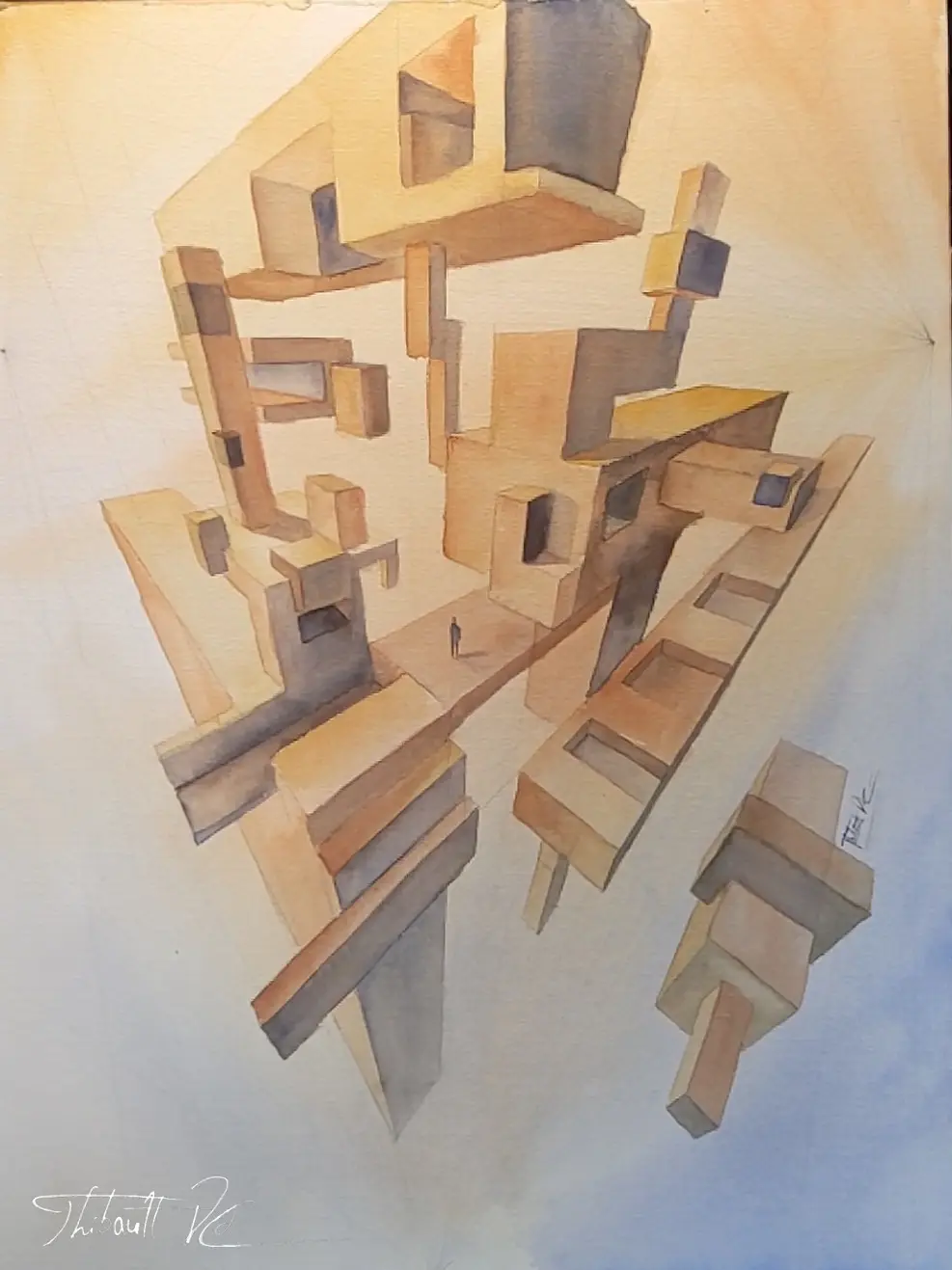 C'est bien pour cela qu'on ne parle ici que de théorie géométrique j'insiste. On peut peindre sans respecter strictement les règles. Les connaitre apporte toutefois une aide appréciable je pense. Personnellement je ne l'applique jamais car j'ai appris la perspective quand j'étais plus jeune. C'était PFF... je ne me souviens plus (...Il faudrait m'apprendre comment placer les émotis)...