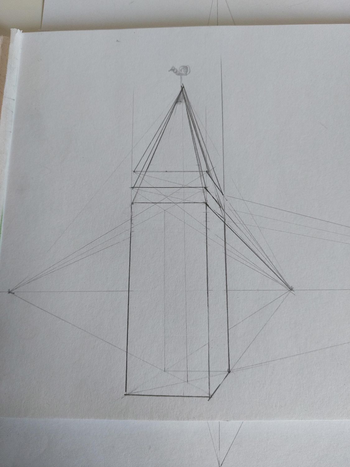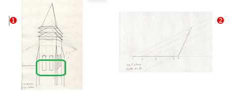 Mais l'explication est ici: le "2" que tu indiques correspond à la méthode employée dans l'encadré vert du "1". Comment garder les mêmes proportions quand on passe de la vue de face à la vue en perspective ? Ça mérite un document séparé, c'est vrai. Pour l'instant le dessin à main levé est plus simple pour les baies latérales...