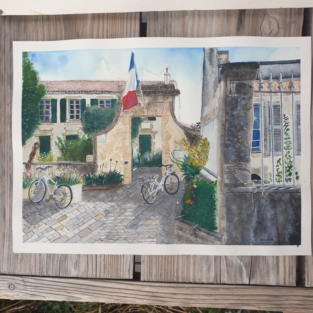 Le premier réalisé après visionnage des tutoriels de Thibault c'est la mairie d'Ars-en-Ré vu du café d'en face.